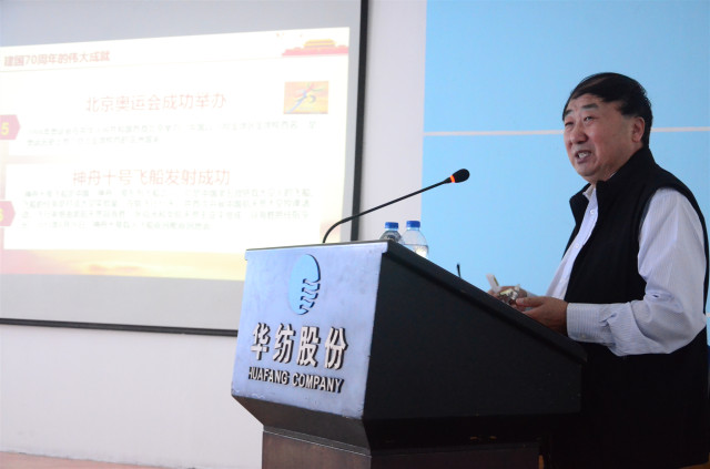 在“不忘初心、牢記使命,爭當圓夢人”這部分內容中,王力民結合華紡43年發展歷程和個人切身經歷,介紹了新時代的祖國日新月異的發展歷程。他說,作為“華紡人”,深刻感悟到公司自1976年建廠以來,在黨的帶領下逐步成長發展,內心充滿了幸福感和自豪感。他告誡公司廣大員工特別是黨員干部,要不忘初心,牢記建設國家、奉獻社會的歷史使命,在新的形勢、新的機遇下,既要做追夢人,又要做圓夢者。