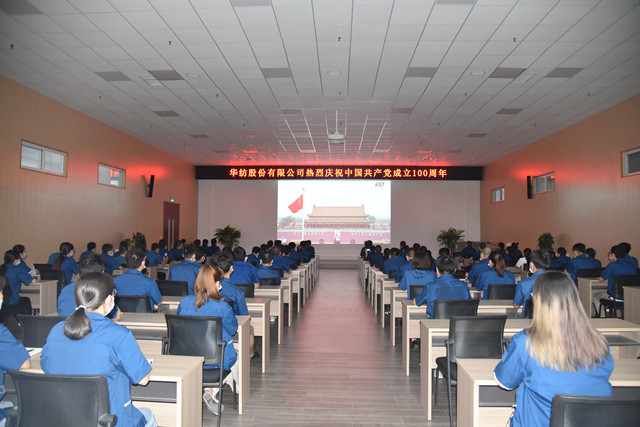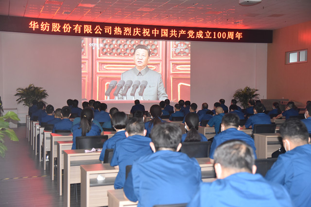 7月1日上午8時,華紡股份有限公司黨委組織公司黨委、行政班子成員、基層黨支部廣大黨員干部,集中收看慶祝中國共產黨成立100周年大會,認真聆聽習近平總書記的重要講話。