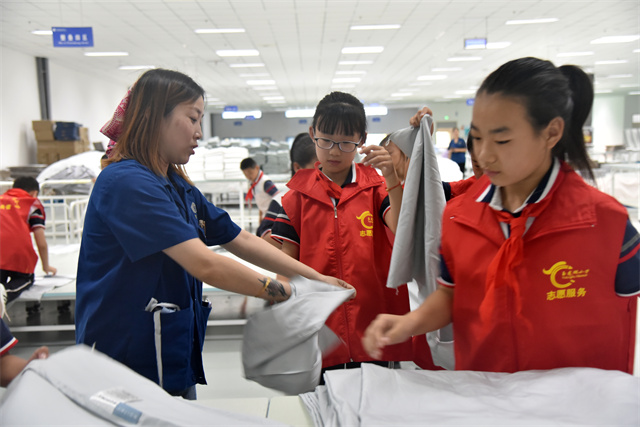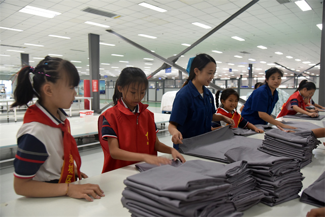 9月23日,濱城區(qū)玉龍湖小學(xué)四年級學(xué)生在老師帶領(lǐng)下走進公司,實地參觀了公司的生產(chǎn)車間以及部分展廳,現(xiàn)場體驗了家紡產(chǎn)品驗整及包裝等生產(chǎn)環(huán)節(jié),感受勞動的艱辛與快樂。