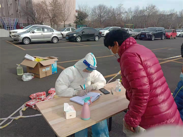 郭冬梅是華紡戰(zhàn)“疫”志愿者中的一員,在本輪疫情中,來自公司各個(gè)崗位的56名志愿者主動(dòng)請(qǐng)纓,投身一線,與萬千醫(yī)護(hù)人員一起為筑牢基層防控的堅(jiān)固壁壘而不辭辛苦。“請(qǐng)有序排隊(duì),出示二維碼,保持一米距離……”公司志愿者們的身影,活躍在各個(gè)核酸檢測(cè)工作現(xiàn)場(chǎng)。他們服從社區(qū)防疫部門的統(tǒng)一指揮,按照工作分工,引導(dǎo)社區(qū)居民有序排隊(duì)、出示健康碼、掃碼登記信息,為進(jìn)行核酸檢測(cè)的群眾提前做好采樣準(zhǔn)備。