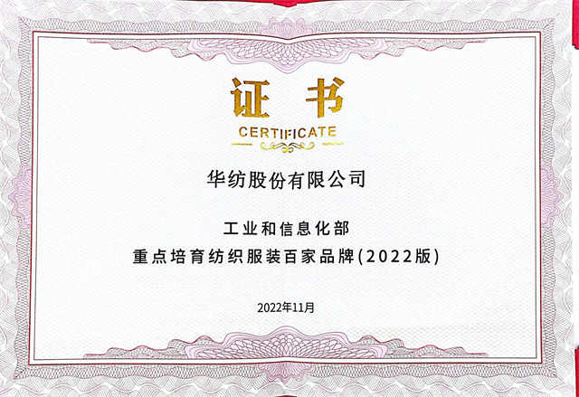 近日,由中國紡織工業聯合會、湖州市吳興區人民政府聯合主辦,以“新變革下的品牌價值提升”為主題的中國紡織服裝品牌大會在浙江湖州召開。大會期間,工信部發布“重點培育紡織服裝百家品牌名單(2022版)”名單,華紡股份有限公司入選。