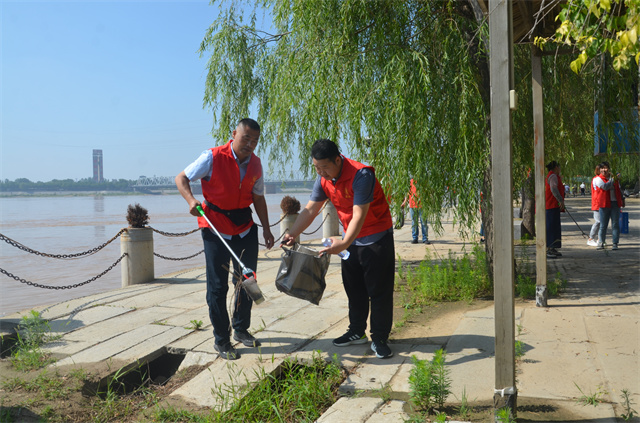 上午8時(shí)50分志愿者們準(zhǔn)時(shí)集合出發(fā),大家身穿紅色馬甲,頭頂烈日、自由組隊(duì),發(fā)揮團(tuán)隊(duì)協(xié)作精神,沿著黃河兩岸徒步行走撿拾垃圾,有的手持鉗夾,有的拿著垃圾袋,認(rèn)真清理收拾垃圾,將廢棄的煙盒、燒烤殘余等垃圾清理干凈放入袋中。志愿者們充滿干勁,充分發(fā)揚(yáng)不怕臟,不怕苦,不怕累的精神,積極投身到環(huán)境清潔行動(dòng)中,成為黃河邊一道靚麗的風(fēng)景線。