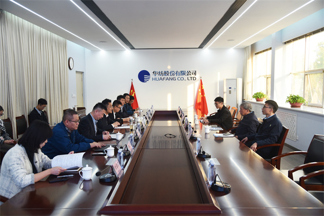參觀結束后,座談交流會在一樓會議室召開,濱城區委常委、組織部部長李一鳴主持會議。會上,閆英山對劉嘉麒院士一行的到來致以熱烈歡迎,并詳細介紹了企業發展歷程、生產運營、人才建設、技術研發及成果轉化等方面的情況。劉嘉麒院士也介紹了自己的研究領域和豐碩成果。隨后,雙方圍繞技術合作展開深入交流。劉嘉麒院士對公司在技術創新和產品研發方面取得的成就給予高度評價,并表示希望未來能與華紡在相關領域開展更廣泛合作,共同推動紡織行業的科技進步與創新發展。