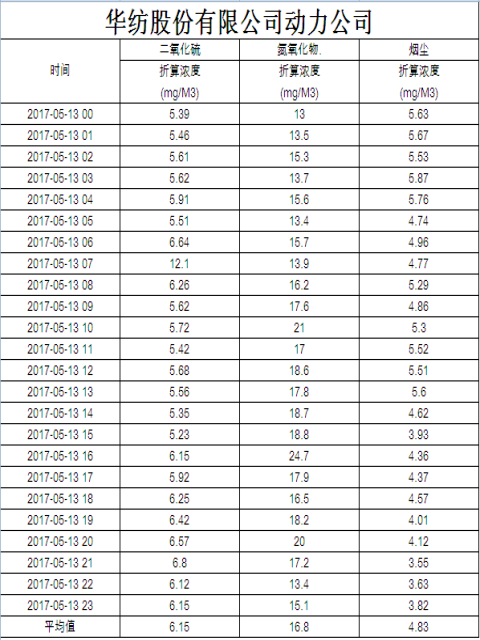 煙氣排放數(shù)據(jù)信息公開2017.5.13數(shù)據(jù)