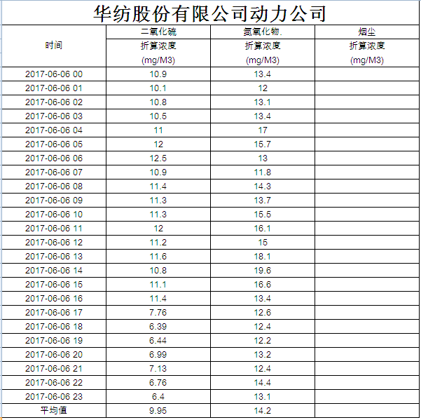 煙氣排放數據信息公開2017.6.6數據