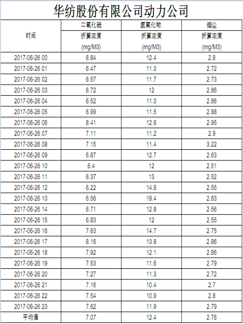 煙氣排放數據信息公開2017.6.26數據