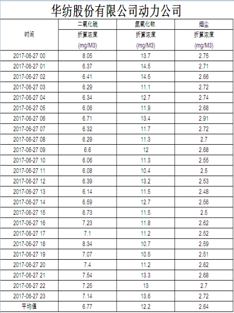 煙氣排放數據信息公開2017.6.27數據