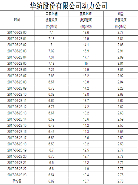 煙氣排放數據信息公開2017.6.28數據