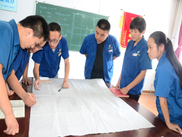 在服裝車間技術科,經常能看到這樣的情景:技術人員“一言不合”,就到會議室展開討論。每當有新產品要做或者大家有不同意見的時候,都會選擇在會議室的黑板上寫寫畫畫,把打版的每個數據寫上畫上,一起來討論每一個數值及每一條線的弧度,直到制定出合理的方案。