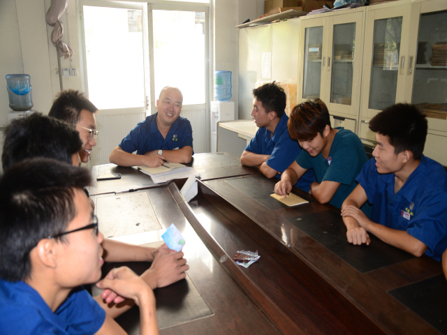 這是發(fā)生在花一車間員工座談會上的情形。為了更好的了解新員工的思想動態(tài),讓新員工更快的融入到團隊當中去,進一步提高員工的滿意度和穩(wěn)定率,花一車間組織最近入職的職業(yè)學院機電專業(yè)的學生們進行了一次座談會,在座談會上大家輪流分享了對工作的感受,并對車間提出了一些好的建議。