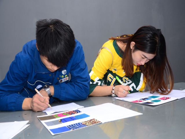 在測試前,質量部左小燕和宋玉柱分別講解了測試要求和標準,最終,經過測試時間和測試質量兩方面的綜合考核,面二車間顏霄獲得色差比賽第一名,花二整裝王執政獲得第二名,面一車間董志勇、面二車間楊偉華、面三車間信德地、家紡車間萬興江、花一整裝孫志明并列第三名;在色棋排列測試中,第一名由面一整裝魏紅輝、成品檢驗徐曼兩人獲得,第二名是家紡車間鄭凱,第三名是面二整裝翟維洋、林盼。