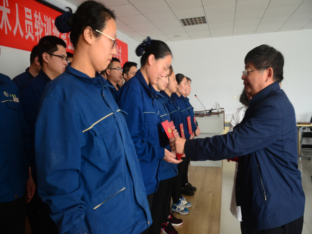 儀式在五期學員激情的《團結就是力量》合唱中開始,會議由副總工程師孫紅玉主持,孫紅玉做了《服務新動能,筑夢新時代》的總結報告;副總經理孫中然宣讀了公司對培訓班(第五期)王海花等20人準予結業的通報,宣讀對培訓班(第五期)優秀小組、優秀學員的表彰決定,對培訓班(第六期)學員組成的通報;總工程師羅維新為結業學員頒發結業證書和紀念品,為優秀小組、優秀學員頒發榮譽證書,為第六期學員授書;第四期學員紀方超、第五期優秀學員王海花、第六期新學員郭紅娥做了分享發言;羅維新圍繞人才培育、隊伍建設等內容做了重要講話。儀式結束后,培訓班(第五期)結業學員在承諾書上鄭重簽下各自的名字。