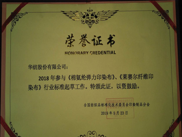 在印染行業(yè)面臨復(fù)雜的國內(nèi)外經(jīng)濟環(huán)境和成本大幅上升、環(huán)保加嚴(yán)、國際市場競爭加劇的情況下,公司圍繞紡織印染行業(yè)“科技、時尚、綠色”的新定位,持續(xù)堅守“質(zhì)量華紡”的生產(chǎn)理念,推進和提升精益生產(chǎn)管理。同時,緊跟國家、省、市等各級標(biāo)準(zhǔn)化管理系列工作推進步伐,積極參與國家、行業(yè)、團體等標(biāo)準(zhǔn)制修訂工作。